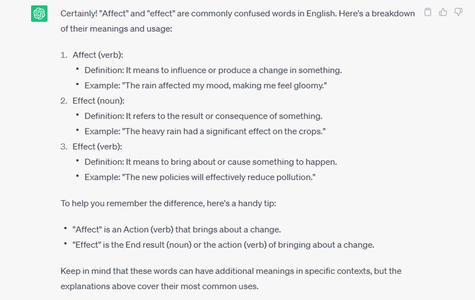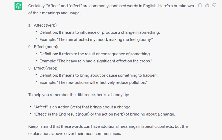 EN «ChatGPT, could you explain when to use ‘affect’ and ‘effect’?»