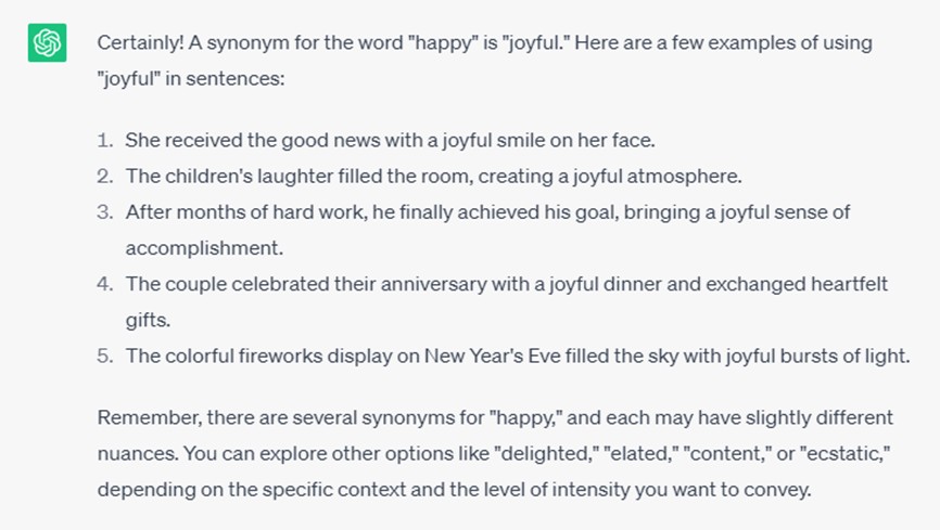 EN «ChatGPT, can you suggest a synonym for the word ‘happy’?»