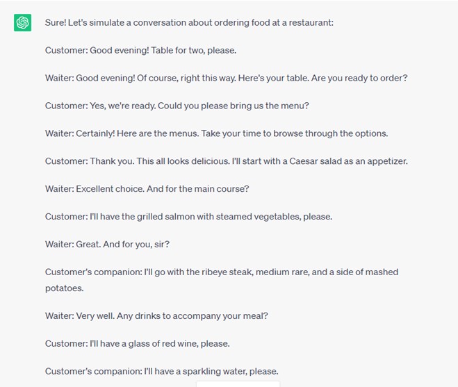EN «ChatGPT, let’s simulate a conversation about ordering food at a restaurant.»